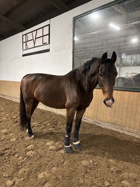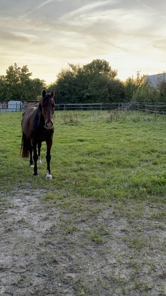 Wir suchen für unseren Greg ein neues schönes Zuhause, da wir ihm nicht gerecht werden können. Greg ist ein KWPN Wallach, geb. 2011, ca. 1,60m Er war früher ein Fahrpferd, wird von uns aber ausdrücklich nicht als Fahrpferd verkauft. Greg ist ein sehr sensibler und nervöser Wallach, der Zeit, Ruhe und Vertrauen braucht. Mit freundlicher und pferdegerechter Arbeit zeigt er sich jedoch lernwillig und kooperativ. Wir haben ihn hier ebenfalls geritten und nach entsprechender Vertrauensarbeit ist Reiten durchaus möglich. Aktuell wird er jedoch als Beistellpferd verkauft, mit Option auf Reiten, wenn Erfahrung, Geduld und Gefühl vorhanden sind. Greg kennt Doppellonge, Longe, Bodenarbeit, (Reiten,). Aktuell steht er in einer Box mit täglichen Paddockgang. Greg kennt aber auch Offenstallhaltung. Im Umgang ist er absolut lieb, freundlich und sehr menschenbezogen. Er genießt Aufmerksamkeit und bindet sich eng an seine Bezugsperson. Für den reinen Sport ist er nicht geeignet, dafür aber für Menschen, die ein feines, sensibles Pferd zu schätzen wissen und Freude an Boden- und ruhiger Arbeit haben. Wir wünschen uns für Greg ein ruhiges, pferdegerechtes Zuhause bei erfahrenen Pferdemenschen, die ihm Sicherheit geben können. Weitere Informationen und Videos gerne auf Anfrage. Aufgrund der Beschreibung würden wir von einem Probereiten gerne absehen. Falls ihr Interesse geweckt ist und Sie Greg kennenlernen möchten, erreichen Sie uns unter 0160 1893211 oder per Nachricht.
