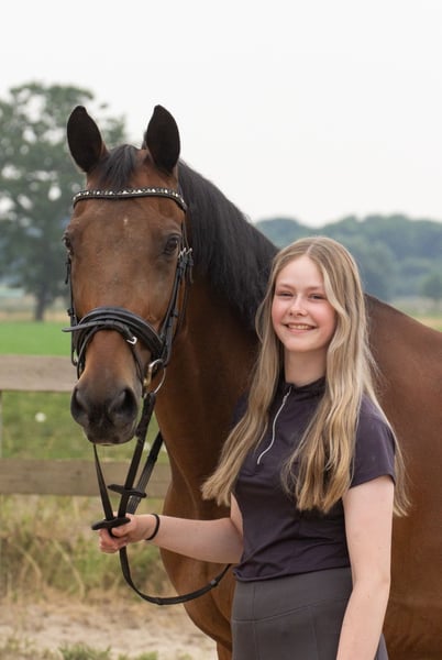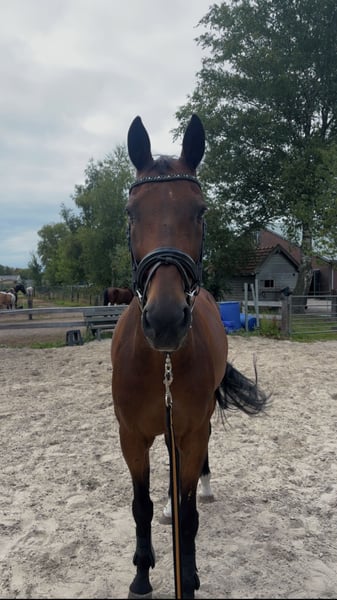 Fenno is een 15-jarige ruin met een gouden hart. Hij is een heel gevoelig paard dat snel overprikkeld kan raken en daardoor wat extra geduld en rust nodig heeft. Door die gevoeligheid is hij juist heel puur en eerlijk, waardoor hij ook heel geschikt zou kunnen zijn voor paardencoaching: hij spiegelt direct en laat je zien wat er speelt. Karakter: Fenno is een ontzettend lief en betrouwbaar paard. Hij zal nooit gemeen worden naar zijn ruiter, ook al vindt hij dingen soms spannend. In de omgang zoekt hij heel erg het contact op, is heel nieuwsgierig en lekker vrolijk. Fenno bloeit het meest op in een rustige omgeving met duidelijke structuur. Hij is gevoelig voor maagzweren, dus een stabiele en rustige manier van houden is voor hem belangrijk. Rijden: Fenno is superfijn om te rijden en heerlijk braaf op buitenrit. Alleen naar buiten vindt hij wat spannend, maar met een zekere ruiter is dit goed te doen! Met een ander paard(en), is hij super braaf en geniet hij enorm. Presteren hoeft voor hem niet meer: hij zou het liefst lekker genieten van het leven met buitenritjes of een rustig rondje in de bak. Ideaal plekje voor Fenno: - Rustige omgeving, het liefst paarden aan huis - Veel weidegang in kuddeverband (hij kan heel goed met andere paarden) - Geen prestatiedruk, maar gewoon samen zijn, knuffelen en buitenritjes of rustig rondje in de bak - Iemand met veel geduld die plezier haalt uit het maatje-zijn en niet alleen uit het rijden - Ook passend als weidemaatje, of paardencoaching Reden van verkoop: Ik ben zelf het plezier in de paardensport kwijtgeraakt en gun Fenno een plek waar hij helemaal tot zijn recht komt. Verkopen heeft helemaal geen haast. Fenno gaat alleen weg als er een 100% passend, liefdevol 5 sterren huisje is gevonden. Fenno verdient een plek waar hij helemaal zichzelf mag zijn, een maatje om mee te genieten en waar zijn gevoeligheid juist een kracht kan zijn.