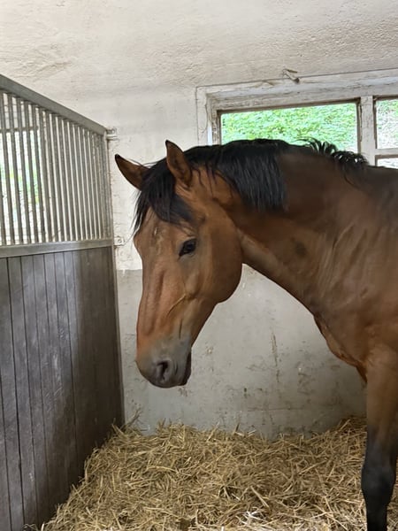 Our Erato is not only a stunningly handsome horse, but he also excels as an excellent instructor for both children and adults. He is consistently reliable, very well-behaved, and always attentive to his rider. He provides every rider with a wonderful riding experience. Erato successfully took our then 11-year-old daughter from E-level to A** level in show jumping within a single season. In dressage, he was trained up to level M by us. He performs flying changes as well as trot and canter traversals with ease. In the terrain, he is a consistently dependable partner—whether riding alone, in a small group, or with a partner. Erato always stays close to his rider and looks out for him. If you are looking for a calm, reliable schoolmaster for dressage and jumping, Erato would be the perfect partner by your side. He is also exemplary in handling, loading, farrier visits, and turnout, and can be managed effortlessly even by children. If Erato has sparked your interest, I look forward to hearing from you, preferably via WhatsApp or by phone. I am happy to send additional videos via WhatsApp.