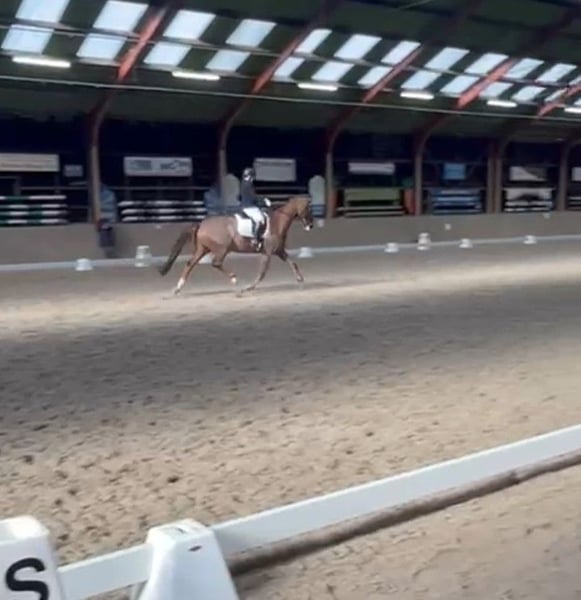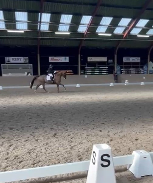 For sale: Stylish KWPN gelding. Born in 2009, dark bay with a height of 16.1 hh. This sweet and honest gelding has three good gaits and is classified at ZZ-light level. Easy to ride, making him suitable for both beginner and ambitious riders/competitors. Pedigree: San Schufro x El Corona. The horse occasionally swallows air. We are happy to provide further information and videos upon request (not always reachable by phone).