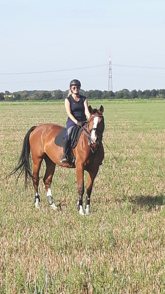 Guten Tag zusammen! Ich suche ein neues Zuhause für meinen 17 jährigen Wallach, ein braunes KWPN (Holländisches Warmblut), 1,75 m groß. Er ist ein freundlicher und gutmütiger Freizeitpartner mit Turniererfahrung, Dressur und der sowohl im Gelände als auch beim Springen Freude bereitet. Er ist verladefromm, hat zwei Eisen vorne und ist beim Schmied brav. Er liebt es, draußen auf Paddock oder Weide zu stehen, und fühlt sich in einer kleinen Herde am wohlsten. Als Freizeitpferd ist er ein verlässlicher Begleiter, der gerne verwöhnt wird und auch mal stehen kann, ohne dabei unangenehm zu werden. Da meine Kinder aus dem Haus gehen und ich den Reitsport reduziere, wünsche ich mir einen liebevollen Menschen, der ihm die Zeit und Pflege schenken kann, die er verdient. Sattel Trense etc kann mitgegeben werden. Bei Interesse freue ich mich über eine Nachricht oder einen Anruf. WhatsApp 0173316407 Ganz liebe Grüße Jo
