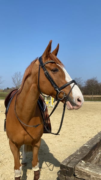 Cuba is looking for his forever home ♥️ Cuba has spent many years as a competitive show jumper, achieving success up to S-class level in show jumping. At the end of 2023, he sustained a tendon injury and has since enjoyed a rest period on the pasture throughout 2024. During this time, he has recovered very well – ultrasound scans today show no signs of the injury. Since he is still too young and fit for retirement, he came to us with the goal of becoming a schoolmaster. Unfortunately, we have found that the constant change of riders is not ideal for Cuba. We find this very unfortunate, as we enjoy him very much, but initially, he was intended to be available for our riding students. For his own well-being, Cuba would be the perfect school horse – he desires a consistent handler and a stable partnership. We must accept this with a heavy heart and are therefore seeking his suitable forever home. Our criteria for his new home: - Ample turnout and horse-friendly management - Regular rides in the terrain and a varied training schedule - Sporty ambition should not be the main focus About Cuba: - Very calm and reliable in the field - Under saddle, he has a pleasant "go" and is therefore not suitable for beginner riders - Shoeless (barefoot) - Herd-compatible Cuba is a wonderful horse that will bring a lot of joy to his new owner. Not sold to riding schools! A trial ride costs €45 to prevent riding tourism; this amount will be refunded upon purchase. If you're interested, I am happy to be available by phone: 0174 3779106