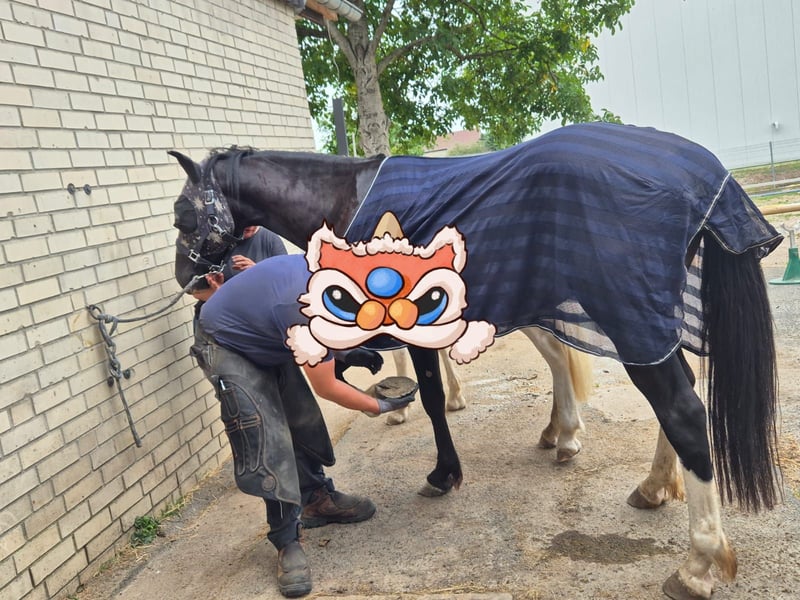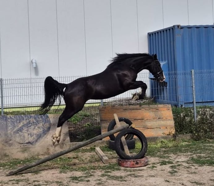 Black Night , genannt Blacky ist ein wunderschöner 3 jähriger Rappwallach der noch voll in seiner Entwicklung steht . Blacky leibr es wenn man mit ihm arbeitet. Er kennt Bodenarbeit , Longe , Spazierengehen und wir haben die ersten Schritte unter dem Reiter begonnen . Er lebt in einer kleinen Herde im Offenstall mit 24/7 Heu. Er ist sehr entspannt , hat tolle bewegungungen und sicher für vieles geeignet.