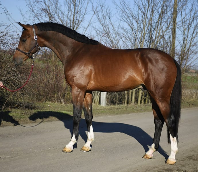 Impressive 3-year-old KWPN stallion, standing at 169 cm, with a modern sport type and excellent conformation. A very special young horse with outstanding presence and natural athletic ability. ✔ Strong, correct build with powerful hindquarters ✔ Elegant head and expressive movement ✔ Three quality gaits with natural balance ✔ Clean legs and correct foundation ✔ Friendly character, intelligent and willing to work This young stallion shows great potential for sport (show jumping prospect) or as a future breeding stallion. He combines blood, scope, and rideability – making him an exciting investment for ambitious riders or professionals. He is well handled, good in daily management, and ready to continue his education. 📩 Message for more information, videos, and price WhatsApp: +36 30 639 2427 A top-quality young horse with a bright future ahead! 🐎✨
