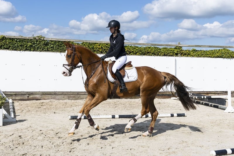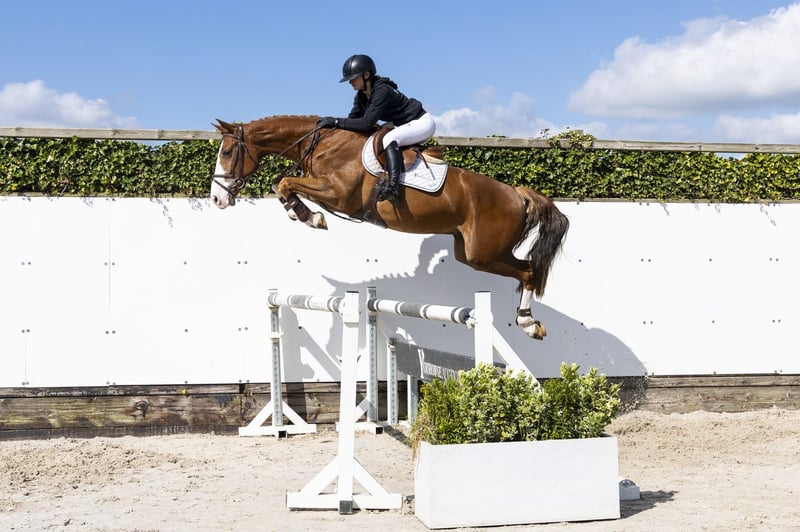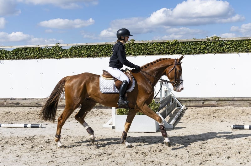 Beautiful chestnut gelding with a commanding presence and excellent quality. Light-footed with a good jumping technique and a clear overview of the course. Takes off well and is easy to ride. Ready to compete in a training or amateur course. Sire Newmarket VM – 1.45m level. Son of Chacoon Blue (1.50m), from the line of Chacco-Blue (1.60m), renowned for scope, reflexes, and modern sport quality. Dam Celin v Veecaten – 1.10m level, daughter of Ukato (1.60m). Damline From a strong performance family: Kroon v Veecaten – 1.55m Mijn Heer voor Veecaten – 1.40m Neeltje v Veecaten – 1.35m Second generation: Baron – 1.55m Chef v Veecaten – 1.55m Mats v Veecaten – 1.45m Noa v Veecaten – 1.35m Further in the lineage: Valine v Veecaten – 1.60m Robust international sport line with multiple horses competing at 1.40m to 1.60m level.