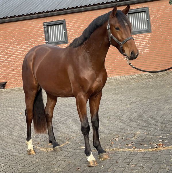Rolfgang – KWPN-gelding met topafstamming: Wolfgang × I’m Special de Muze Rolfgang is een in 2021 geboren KWPN-gelding (1,64 m) dat indruk maakt door zijn uitzonderlijke afstamming en karakter. Hij is afkomstig van Wolfgang (Farn × Eratosthenes xx) – een van de meest legendarische fokhengsten van de KWPN-vereniging, wiens nakomelingen successen behalen op Grand Prix-niveau en op Olympische Spelen – en uit een moederlijn van I’m Special de Muze (Emerald × Nabab de Rêve), een van de meest succesvolle lijnen binnen de moderne springpaardenfokkerij. Deze combinatie verenigt het beste van twee werelden: de klassieke hardheid, rijdbaarheid en bereidheid tot presteren van Wolfgang met de moderne springtechniek, voorzichtigheid en het bloed van de de Muze-stam. Rolfgang zelf valt op door zijn mensgerichtheid en indrukwekkende rust – hij blijft kalm en helder onder het zadel, gaat alles soepel voorbij en toont een natuurlijke balans. Voor zijn jonge leeftijd is hij op topniveau getraind en direct inzetbaar. Een paard voor kenners en liefhebbers die kwaliteit, karakter en afstamming evenzeer waarderen. Dit paard wordt uitsluitend verkocht aan de allerbeste handen – een 5-sterren thuis is een must. De juiste plek staat duidelijk voorop, nog vóór de prijs.