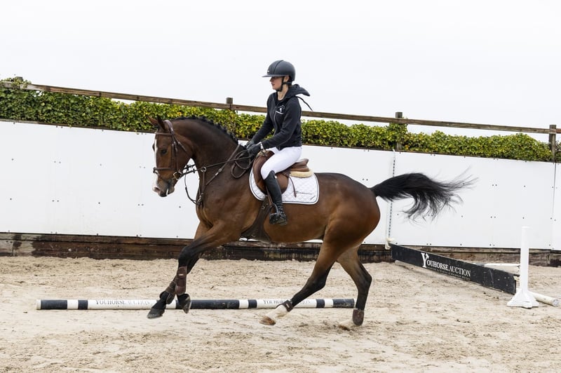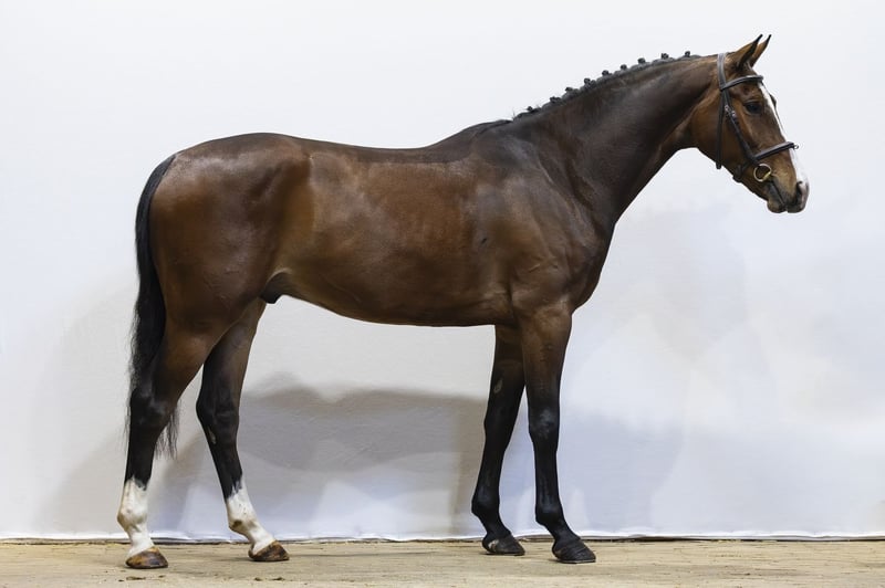 Horse with a lot of quality and a nice appearance. Shows a good attitude and has blood in a good way. Jumps with a lot of push-off and shows scope. He is just two months under saddle. A horse with perspective for the future. Sire Aristoteles V – 1.60m level. International showjumper by Padinus x Lux Z, with performances at the highest level. Dam La Paxludine S – 1.45m level. Damline Granddam Paxludine. From this line come: Grieg S – 1.60m Ivaludine S – 1.50m Alex Ludine S – 1.40m Ulydine S – 1.35m Zingo S – 1.35m Chalan – 1.30m Additionally multiple horses at 1.45m, 1.40m and 1.35m level. Approved stallion: Riverman – PSG/Inter I.