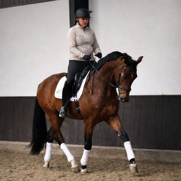 Very compact 4-year-old gelding with an exceptionally sweet and calm temperament. The horse is clean in the photos (neck, legs, and back) and correctly built. ✔️ Age: 4 years ✔️ Height: approximately 16.1 hh ✔️ Pedigree: Fürst Dior x Charmeur ✔️ Well-ridden and correctly trained for his age level ✔️ Very gentle and reliable under saddle ✔️ Handsome and friendly in handling ✔️ Good trailer manners ✔️ Suitable for both ambitious amateurs and professionals An honest, sensible gelding with great potential for the future, who will make someone very happy. 📍 Location: Zuid-Beijerland, Netherlands 📞 Contact for more information (phone or WhatsApp): Jennifer – +31 6 11707662 About Cayenne Stables At Cayenne Stables, we combine quality with personal attention and care for both horse and rider. We specialize in training, sales, and brokerage of high-quality dressage horses, with the well-being of the horses always a top priority. We are not breeders and do not sell untrained horses or horses that have not yet reached a level appropriate for their age, physical, and mental development. Our horses are professionally guided long-term by a dedicated team of trainers, veterinarians, blacksmiths, and physiotherapists. Our advertisements aim to showcase our horses and our philosophy — not out of haste, but with trust in the right match at the right time. 🌍 www.cayennestables.nl | 📸 instagram.com/cayennestables | 🌐 facebook.com/cayennestablesbv (EN) | 🇳🇱 facebook.com/cayennestables (NL)