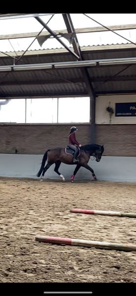 Voor wie een fijn, allround sportpaard zoekt! Semiramis is een 4 jarige ruin van Stargos VDL x Perfectum. Hij meet ongeveer 1,70, beheerst een goede dressuurmatige basis en heeft ook al wat gesprongen onder het zadel. Dit pakt hij erg goed op! Ook gaat hij regelmatig mee op buitenrit, zowel alleen als met andere paarden. Het is een talentvol paard die erg leergierig is, dingen snel oppakt en zowel in de omgang als onder het zadel erg nuchter is. Hij is vorig jaar klinisch en röntgenologisch volledig goedgekeurd zonder bemerkingen. Hij is altijd regelmatig bij de hoefsmid en tandarts geweest, ook zijn al zijn inentingen in orde! Semiramis zou het beste passen bij een ambitieuze ruiter met enige ervaring met jonge paarden, gezien zijn leeftijd! Een plekje waar hij, naast een mooie opleiding, ook paard mag zijn, heeft de voorkeur! Bij serieuze interesse graag appen of bellen, video’s zijn beschikbaar op aanvraag!