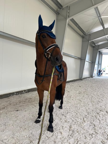 Promising five-year-old gelding with interesting show jumping lineage on both sides. On the dam's side: Gaillard De La Pomme and Glock’s London, while the sire of the gelding is Carrera VDL, with a whole array of show jumping stars. The horse started competing this year at the L level (100 cm) and P level (110 cm). Competition records available. Very flexible in jumping. Good at galloping. Agile. In hand, he is a "teddy bear" type. Well-mannered, brave. Problem-free in transport and with the farrier. The horse is paddocked. Non-conflictual with other horses. No vices or defects. Has TUV. Very good X-ray results.