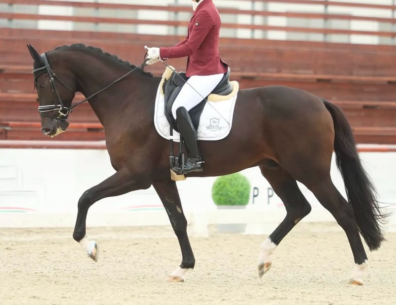 Pique tiene una altura de 172 cm, nació en 2020 y fue montado a los 3 años. Es muy fácil de montar y ya está sólidamente entrenado hasta el nivel L de doma. Pique vive en un establo abierto, conoce manadas mixtas, sale solo al campo y está acostumbrado al trato con niños. Es un semental muy sociable. También es sencillo en el trato con otros caballos y no es dominante. Sus cascos son de muy buena calidad, aunque está herrado porque trabaja mucho. Pique también conoce perros, gatos, etc. Está sano, no tiene enfermedades previas, entrega sus cascos sin problemas, y está acostumbrado al transporte en remolque. Puede estar algunos días en el prado sin que se descontrole. Sus radiografías actuales están sin hallazgos y son absolutamente normales. Videos disponibles, preferiblemente por WhatsApp al +36308922557. El transporte a nivel europeo o a otros continentes (América, etc.) no es un problema para nosotros. Precio incluyendo transporte en 1500 km: 16.000 euros.