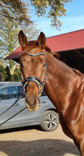 Expressive 4-year-old dark chestnut gelding Three very good basic gaits: a ground-covering walk, a lively trot, and an uphill canter. X-rays are clear, including back and neck. For more information, please call 01752447212.