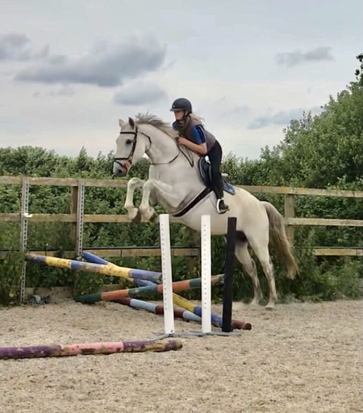 Prince is 5 and he takes after his name! He’s An absolute treasure to find as a young horse! . An ideal American hunter jumper type to import and produce . He has good x rays including back and is fashionably bred with desireable cornet obolensky bloodlines I have owned him since he was 3 and he’s been slowly and correctly handled and produced. Good to feet trim , load and travel in a lorry or horse trailer . He has straight legged movement for the american hunters too plus a balanced canter. He sits in a nice light frame and is not strong or spooky. Everything is naturally there for this young horse! Hes very well balanced and rhythmical already . He’s going to be very special if he’s continued to be produced well in the future as he naturally has it all there to work with . Plus great hunter jumper knees!