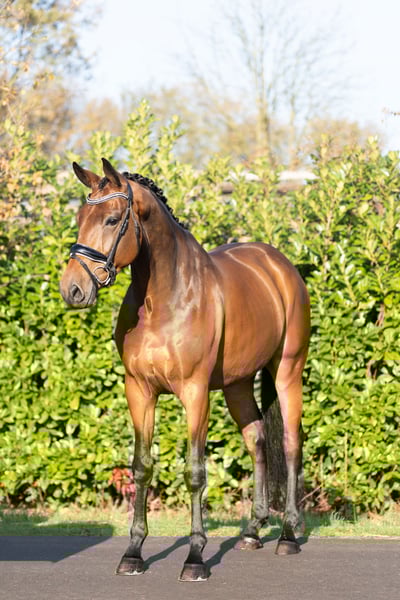 In vendita: splendido cavallo di 5 anni con grande qualità (Le Formidable x Opium) Questo meraviglioso cavallo di 5 anni si distingue immediatamente per il suo aspetto e il suo modo di muoversi. Presenta tre andature fondamentali robuste, mostra molta naturale elasticità ed è stato dichiarato clinicamente e radiologicamente completamente sano. Al tatto è amichevole e educato, ma sotto la sella è un cavallo difficile. È estremamente sensibile, nervoso e si tende rapidamente. Questo lo rende assolutamente inadatto a un cavaliere inesperto. Ha bisogno di un cavaliere che sia saldo, molto sensibile e che ami lavorare con un cavallo stimolante. Per il cavaliere giusto, con pazienza ed esperienza, può svilupparsi in un talento straordinario. Interessati o domande? Non esitate a contattarmi.