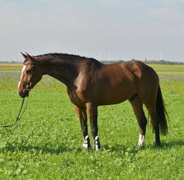 In vendita abbiamo il nostro impressionante stallone Zangersheide COR VAN HOLTINGHE Z, nato nel 2019. Con il suo straordinario pedigree, che risale al padre COPYCAT Z e al famoso nonno COMILFO PLUSZ, è un vero sogno per ogni cavaliere. Da parte materna, è allevato tramite INDOCTRO e CORIANO Z, il che sottolinea la sua eccellente genetica. Questo bellissimo stallone non colpisce solo per la sua imponente altezza di circa 175 cm, ma anche per la sua eccellente capacità di salto. La sua tecnica al salto è un'eredità dei suoi antenati e mostra sempre una notevole disponibilità al lavoro. Nella gestione, COR è un vero tesoro – sia durante le passeggiate che in stalla, è sempre gentile e semplice da gestire. Anche i cavalieri meno esperti si divertiranno molto con lui, poiché è un vero partner sotto la sella. Nel salto, tuttavia, ha ancora bisogno di un po' di supporto, poiché finora ha principalmente partecipato a prove singole. Qui ci sono ottime opportunità per lo sviluppo futuro! Il costo per la prova o la presentazione è di 30 €, che verranno naturalmente accreditati al momento dell'acquisto. Non lasciatevi sfuggire questa opportunità e venite a conoscere COR VAN HOLTINGHE Z – un cavallo che entusiasma sia nello sport che nella vita quotidiana!