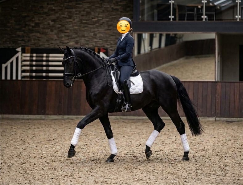 Are you looking for your dream horse? Falkó is an impressive black Warmblood gelding, 6 years old and approximately 175 cm tall, combining elegance, talent, and an exceptionally kind temperament. He is the ideal partner for sport, leisure, and family alike. Falkó is trained in dressage up to medium (M) level and impresses with his beautiful, elastic gaits and correctly ridden movements. He is easy to ride, soft in the contact, well-balanced, and forgiving of mistakes, making him suitable for beginners, young riders, as well as ambitious riders. In terms of character, Falkó is absolutely reliable and well-balanced. He is completely healthy, with a recent veterinary check available, and has no vices, injuries, or allergies. He is safe and confident out hacking, both alone and in a group, and remains calm in traffic. In daily handling, he is very friendly, people-oriented, and affectionate. He is good with the farrier and easy to load, and he gets along well with other horses. Falkó is not only a talented sport horse but also a loyal partner for life – a true gem with heart and mind. 💖 📞 For more information, videos, and price: +36 30 827 3182
