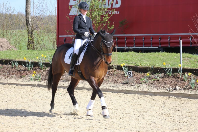 For sale is my gelding – perfect for dressage or eventing! He is a stunning dark bay gelding, born in 2019. Standing at 16.1 hh, he has the ideal size for ambitious riders who value quality and character. This talented dressage partner impresses with his elegant appearance and pleasant temperament. He already demonstrates a good degree of collection, showing potential for the high demands of dressage competition. The gelding is healthy, very affectionate towards people, eager to please, and enjoys his work. He is friendly in handling and would suit both experienced riders and ambitious young talents. He has been in my possession since he was a foal. If you are interested or need more information, please feel free to contact me. Viewing and trial riding can be arranged by appointment. I look forward to hearing from you!