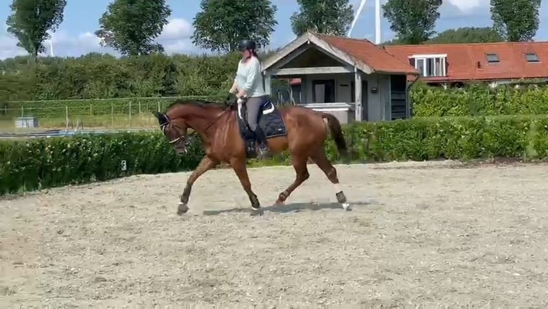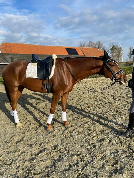 Oliver is a 6-year-old gelding by Ferguson x Amazing Star, standing at 1.68 meters. He moves very nicely and, with the right rider, certainly shows talent for the sport. He has three correct gaits. Oliver is a willing and eager learner, a hardworking gelding seeking a confident and clear rider who can teach him everything he needs to know. He does not become nervous under saddle but does require some reassurance, especially in stressful situations, where he may stand still or step back. Currently, he is being trained at L1/L2 level. He is well-behaved on the ground. He is easy to handle with the farrier and veterinarian. Deworming, teeth, and vaccinations are all up to date. He is social with other horses. Oliver tends to become tense with changes, mainly in the stable. He expresses this through weaving briefly but intensely, and it subsides quickly once the situation returns to normal (e.g., loud noises, new horses in the stable, or a busy environment). At the moment, he is stabled on a small-scale paddock, where he is well-managed. Therefore, I am looking for a stable environment for him. He is a cribber, but only on his front teeth and mainly during and shortly after eating (not otherwise). This is not the reason for his sale. I personally do not feel confident enough to ride him confidently, which affects his potential and my enjoyment. He has a minor radiological finding, but he shows no clinical signs and is fully approved for sport. Inspection is possible at the buyer's expense. Videos available upon request. For more information, please feel free to send a message via WhatsApp.