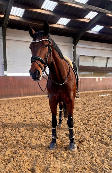 Due to personal circumstances, I am offering my 7-year-old KWPN gelding, Ontario, who stands at 17.4 hands, for sale. Glamourdale x Tango He is a mirror image of his father in appearance—bay in color—and in movements. Power and pure quality on four legs combined with an incredible amount of love and a big heart. Due to a pelvic misalignment (which does not affect him with proper management) and his sensitive nature, he needs a person who has plenty of time and can engage with him extensively and diversely. Unfortunately, I am no longer able to dedicate enough time, which is why I have decided to find a suitable home for him. He requires a confident and empathetic handler; with such a person, he will go through thick and thin. Currently, I only lung him due to lack of time, so I am offering him at a significantly reduced price. For further questions, please feel free to contact me at 015170396272. No dealers or riding schools. Not suitable for beginners or children’s riders. NO riding participation!