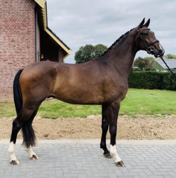 Mo es un potro de 8 años con mucha voluntad de trabajo, con ascendencia de High Five X Charmeur. Su altura a la cruz es de 1,78 m. Un caballo simpático y en movimiento, que en las manos adecuadas puede destacar plenamente. Mo se vende porque, lamentablemente, es demasiado caballo para su actual jinete. Es conocido por el herrero y siempre ha sido atendido de manera cuidadosa por el dentista. Lamentablemente, Mo tiene un calambre en la pierna trasera, aunque en su vida diaria apenas presenta molestias. Recientemente ha sido sometido a una revisión completa. Buscamos un hogar adecuado para Mo que le pueda ofrecer la tranquilidad, el espacio y la claridad que merece. La revisión oficial en 2021 incluyó radiografías.