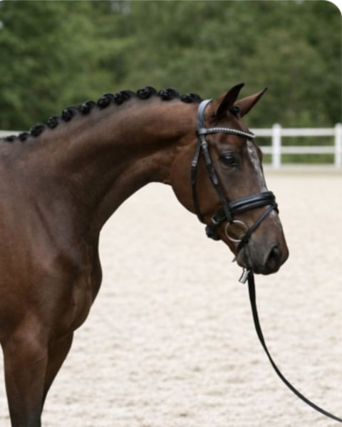 Grand hongre très mobile avec d'excellentes qualités de dressage, affectueux et très proche de l'humain.
