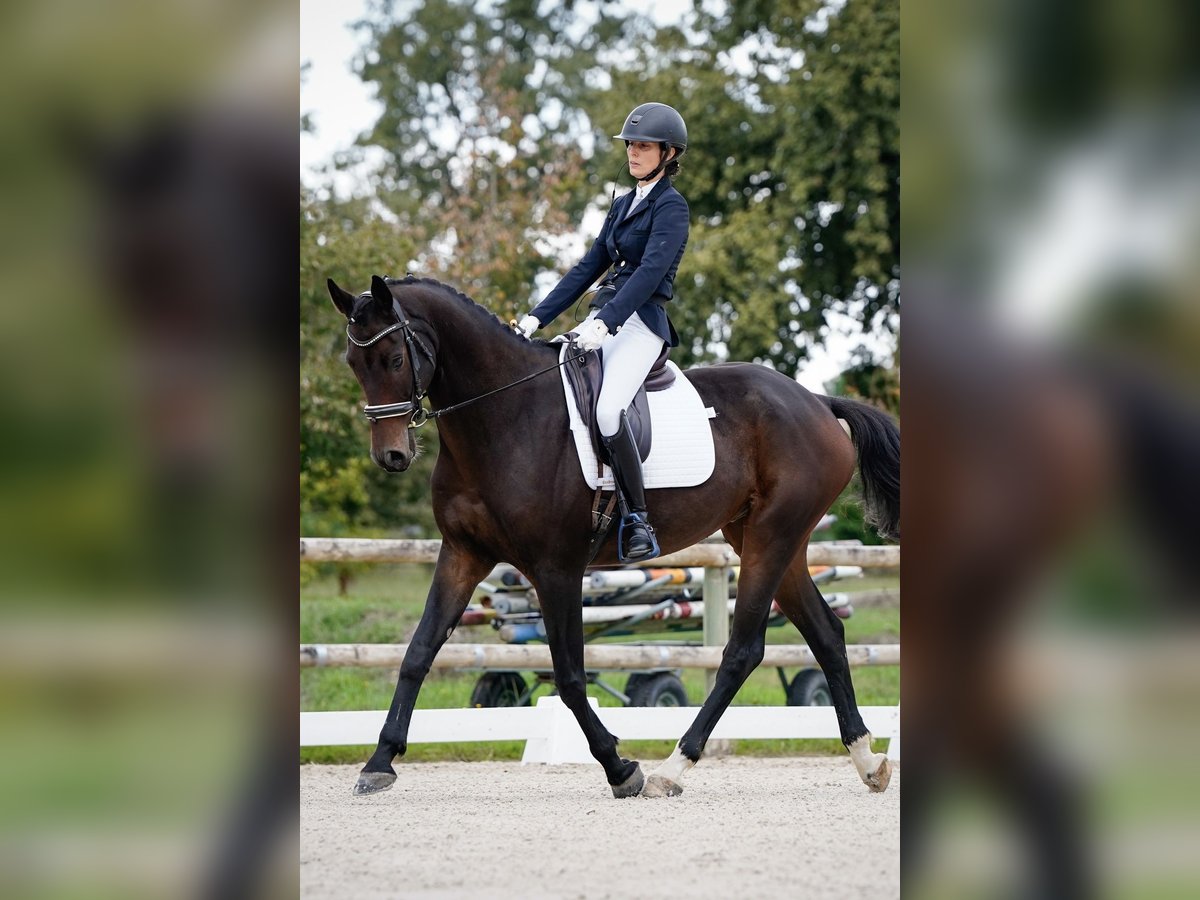 Zum Verkauf: KWPN-Geld horse, geboren 2017, dunkelbraune Farbe, 16,1 hh groß. Dieses Pferd besticht durch eine exzellente Konformation und eine beeindruckende Präsenz unter dem Sattel. Sein KWPN-Genetik garantiert eine hochwertige Abstammung, geeignet sowohl für das Dressurreiten als auch für den Turniersport. Derzeit startet er in der Amateurklasse 2, besitzt aber das Potenzial, sich bis hin zu Amateurklasse 1 oder darüber hinaus zu entwickeln. Er platziert sich regelmäßig in Wettbewerben und hat bereits mehrere Prüfungen gewonnen. Mit einem ruhigen und ausgeglichenen Temperament schenkt er seinem Reiter großes Vertrauen. Er unternimmt alleine Ausritte und ist absolut unauffällig. Im Dressurtraining zeigt er flüssige Bewegungen, schöne Trab- und Galoppwechsel sowie eine bemerkenswerte Flexibilität. Er wurde regelmäßig gearbeitet, ist sehr gut gepflegt und bereit, seine Karriere in dieser Disziplin fortzusetzen. Magnum ist ideal für einen Reiter, der nach einem zuverlässigen, vielseitigen Partner mit vielversprechendem Potenzial sucht. Zögern Sie nicht, mich für weitere Informationen zu kontaktieren.