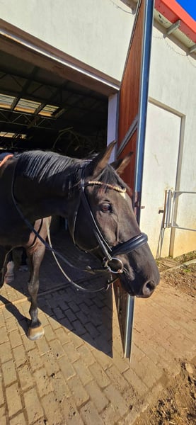 For sale as a companion horse, he has a torn back muscle and a leg issue. The veterinarian does not rule out a return to work and health, pending physiotherapy and consistent treatment. More information and examination results can be sent to interested parties via WhatsApp.
