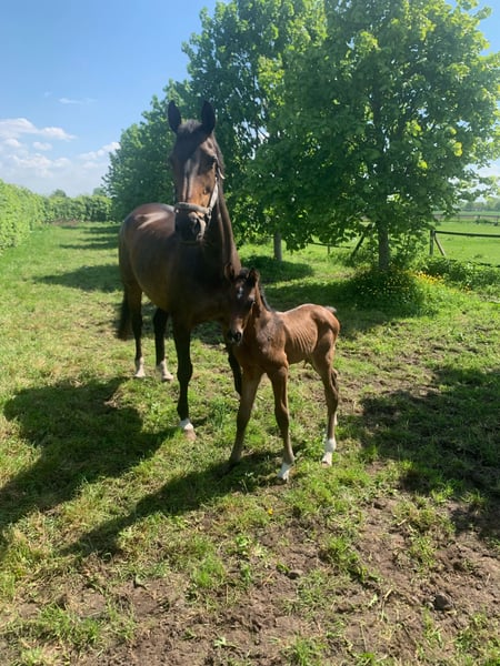 Deze merrie is zelf ster en Z dressuur en heeft inmiddels 5 nakomelingen waarvan de oudste 2 in de sport lopen en ZZL startgerechtigd en de 3e nu net 3 jaar is en ook nog in ons bezit. Net als een nog 2 en 1 jarige. De merrie zelf is echt super braaf en dochter heeft met haar de orun cursus ook gedaan zowel dressuur als springen, tevens ook meegelopen in meertal. Makkelijk in de mond en licht aan de hulpen. Ze is echt super braaf en door iedereen te rijden Ze zou ook uitermate geschikt zijn voor eventing Ze heeft wel een nadeel en dat is dat ze al haar hele leven kribbebijt en ook op stal weleens zuur kan zijn Maar verder echt super mak en makkelijk in omgang We zoeken voor haar een nieuwe plek omdat we zelf gestopt zijn met fokken Merrie is verder top gezond Alleen naar een goed huisje