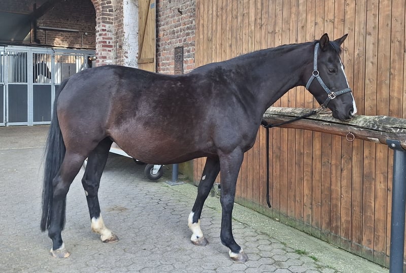 Due to a reduction in our herd size, we are offering our beautiful "Lanea" for sale. Lanea is currently heavily in foal and is expected to foal for the third time in early April. She is being offered strictly without her foal and can only be taken after the foal has been weaned. We are already listing her now so that the future owner can have her inseminated for the upcoming season if desired. Lanea is an uncomplicated, very friendly mare. She is generally in good spirits and easy to handle with both people and other horses. In recent years, she has been used exclusively for breeding. Although she was backed as a young horse, we are selling her as unridden, so she would likely need to be started again. With us, Lanea has always been healthy. Her previous foaling experiences have been smooth to our knowledge, and she has been a good mother. Lanea also accepted her foal immediately last year. She is, of course, fully vaccinated (Influenza, Tetanus, Herpes) and regularly dewormed. Not only due to her highly interesting pedigree and her striking dark coat, but also because of her movement and her exceptional temperament, Lanea is very valuable for breeding. Serious inquiries only, please, from genuinely interested parties. P.S. The videos and photos are current. Unfortunately, she rolled over faster than the camera was ready ;-).