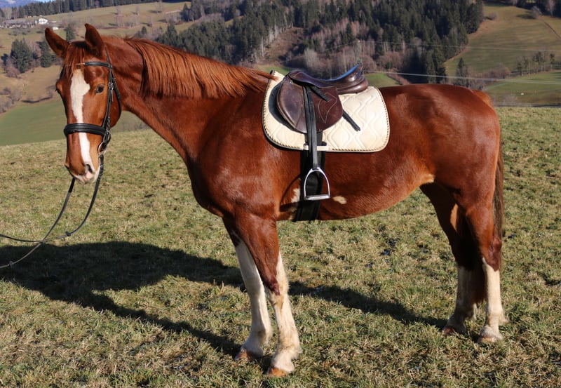 Enchanting KWPN Mare – Perfect for Leisure or Breeding! For sale is a beautiful chestnut mare, born in 2016. Standing at 16.1 hh, she combines elegance with presence. As a KWPN-approved horse and licensed by the Barockpinto Verband Ster, she impresses with her excellent pedigree. She is ideally suited as a leisure horse or for breeding purposes and is consistently friendly in her handling, though she requires an experienced rider. Whether on rides, walks, or relaxed ground work, she is attentive and engaged. Seeking a new owner with a big heart and an open stable space. If interested or for further information, please feel free to contact me. A viewing can be arranged by appointment.