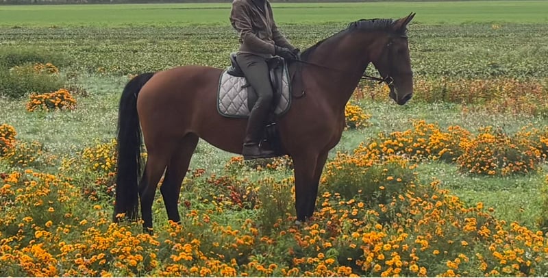 Zum Verkauf aufgrund von Krankheit! Kaat ist eine wunderschöne, große KWPN-Stute im Alter von 10 Jahren. Sie wurde als Dreijährige vom Züchter gekauft und dient als Familienpferd. Dank ihres ehrlichen Charakters war Kaat ihr ganzes Leben lang bei derselben Familie. Im Dressurviereck ist Kaat ein echter Blickfang! Sie beherrscht alle Übungen auf Z1-Niveau. Wöchentlich werden mit ihr Ausritte unternommen, sowohl im Gelände als auch in der Bahn. Alle Seitengänge, vom Schulter-in, Travers bis zu Appuyements im Trab und Galopp, meistert sie mühelos. Sie bleibt impulsiv und lässt sich leicht im Stillstand halten, weil sie stets bei der Sache bleibt. Kaat ist fleißig und aufmerksam. Sie hat ein kooperatives Wesen, was das Reiten sehr angenehm macht. Sie ist nicht sensibel, sondern besitzt einen nüchternen, ausgeglichenen Charakter. Kaat ist ein ehrliches Pferd. Sie kennt ihre Grenzen und ist brav beim Putzen und Satteln. Sie stand sieben Jahre bei derselben Besitzerfamilie und befindet sich momentan aufgrund der Umstände auf einer Pensionsstelle, was sie sehr gut macht. Sie ist nicht schreckhaft auf ungewohntem Terrain. Sowohl in der Halle als auch im Außenbereich zeigt sie sich zuverlässig. Mit Kaat kann man nur Ausritte im Gelände unternehmen. In der Gruppe läuft sie vorne oder hinten mit, galoppiert gerne in der Gruppe. Sie ist gut erzogen und hört aufmerksam auf die Hilfen des Reiters. Kaat könnte auch gut als Jagdpferd eingesetzt werden, da sie überall durch- und überquert, wenn dies von ihr verlangt wird. Kaat hat viel Bewegungsdrang und läuft stets schön vorwärts. Ihr schönes Vorbeugen fällt auf, ebenso wie ihr eleganter Gänge. Sie lässt sich auch wieder leicht zusammenstellen. Kaat ist KWPN-gezüchtet und stammt aus einer schönen Mutterlinie. Sie ist gesund und hatte noch nie eine Verletzung. Sie ist 1,70 m groß und derzeit 10 Jahre alt. Haben Sie Interesse, sie zu erwerben? Dann können Sie sie kennenlernen und reiten. Kaat kann auf Wunsch auch geröntgt werden. Die Kosten dafür trägt der Käufer.
