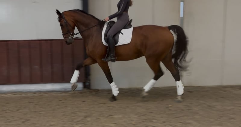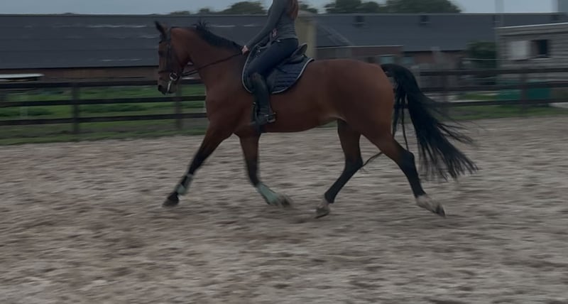 For sale due to illness! Kaat is a stunning, large KWPN mare aged 10 years. She was purchased from the breeder as a three-year-old and has served as a family horse. Thanks to her honest character, Kaat has remained with the same family throughout the years. In the dressage arena, Kaat is a real eye-catcher! She masters all exercises up to Z1 level and shows talent for passage and piaffe. Weekly, she is taken out on outdoor rides. All lateral movements—from shoulder-in, travers, to piaffe in trot and canter—Kaat performs effortlessly. She is easy to sit on because she maintains her impulsion. Kaat is eager and attentive, with a cooperative nature, making her easy to ride. She is not sensitive and has a calm, grounded temperament. Kaat is an honest horse. She knows her place and is well-behaved when grooming and tacking up. She has been with the same owner for seven years, and due to circumstances, she is now temporarily housed here. She handles this very well. She is not spooky on unfamiliar terrain and remains calm in both indoor and outdoor arenas. You can only take Kaat out on outdoor rides. In a group, she can lead or follow, galloping at the front or rear. She is well-mannered and responds well to the rider’s aids. Kaat would make an excellent hunt horse, as she is willing to go anywhere and through anything when asked. Kaat has a lot of drive and enjoys moving out nicely in front of the rider. Her beautiful front leg action draws attention, and she has superb, extended gaits, which she can also close up easily. Kaat is bred in the KWPN studbook and comes from a distinguished dam line. She is healthy and has never sustained an injury. She stands 1.70 meters tall and is currently 10 years old. Interested in purchasing her? You are welcome to come meet and ride her. Kaat can be inspected if desired, with the costs borne by the buyer.