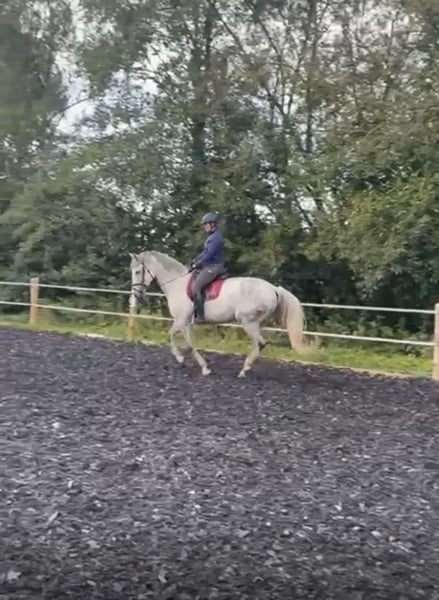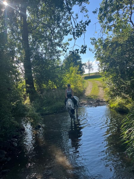 This mare is very sensitive and needs to be ridden with correct, calm aids. She reacts delicately to her rider and values clear, confident communication. As a result, she occasionally tests her boundaries and requires an experienced, self-assured rider. In the field, she is absolutely reliable—both alone and in a group. She behaves well in walk when ridden out with children. Due to her spirited nature and sensitivity, she is not suitable for beginners. She needs daily activity and enjoys variety: groundwork, circus lessons, lunging, rides, or dressage work—all of which she finds equally enjoyable. She works with motivation, learns very quickly, and always displays a joyful attitude towards her work. I no longer jumped her, but the previous owner has videos showing her jumping up to A level. Her excellent pedigree further highlights her potential. A wonderful horse for ambitious riders who appreciate versatile training and a sensitive partner. I would prefer her to have daily turnout or access to an open stable.