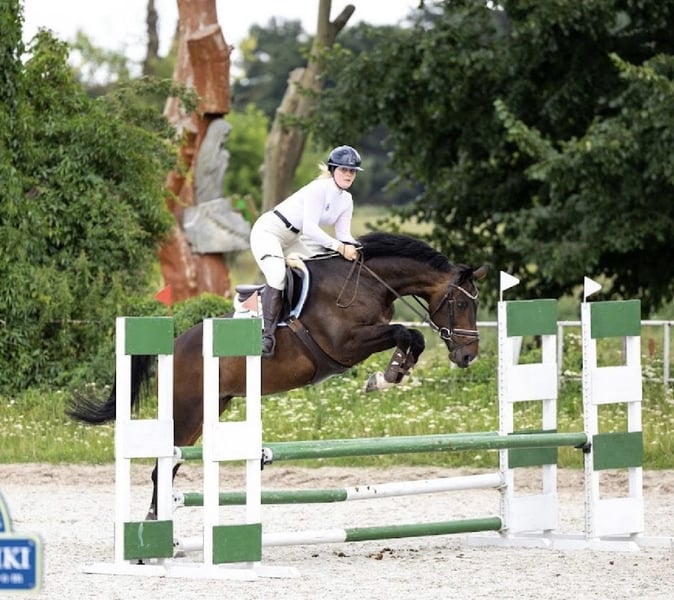11- Letnia Klacz po ogierze Sir Scandic. Kocha skakać, zawsze daje z siebie wszystko na parkurze! Wystartowała z powodzeniem w P-klasie. Jest siostrą Gouverneura który startował na poziomie CCI4* W WKKW. Odważna, równa i mega chętna do pracy- zawsze stara się pomagać! Nie boi się nowych miejsc ani przeszkód, zmiana otoczenia nie robi na niej wrażenia. Świetna partnerka dla kogoś, kto szuka konia z doświadczeniem i sercem do roboty! Zapraszam do kontaktu: +48 733324288