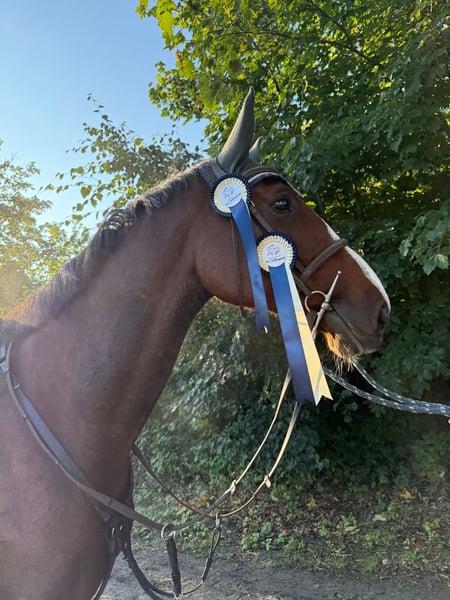 In vendita c'è una cavalla KWPN di nome "Jolina", nata nel 2014 e alta circa 1,72 m. Questa giovane signora non solo colpisce per il suo carattere affettuoso e il suo modo di fare piacevole, ma anche per il suo aspetto straordinario. È molto volenterosa, si muove bene nei tre andamenti (passo, trotto, galoppo) e si comporta sempre in modo educato. Anche nel salto mostra una buona maneggevolezza ed è già esperta in percorso. Con una discendenza da Harley VDL x Indorado, le si aprono sicuramente tutte le strade, sia come piacevole compagna per il tempo libero, sia come futuro cavallo sportivo o anche come fattrice. Naturalmente conosce il maniscalco (attualmente è senza ferro), il veterinario e il caricamento e il trasporto. Inoltre, recentemente le sono stati fatti i denti.