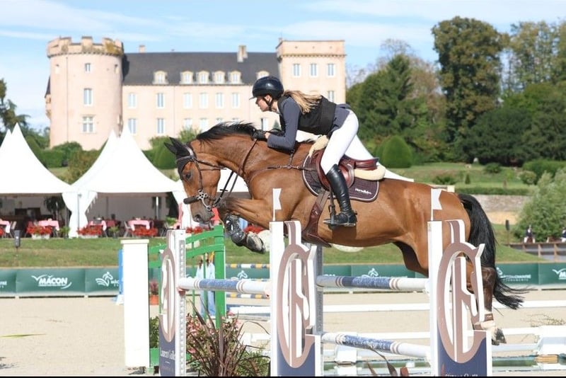 https://esha.horse/Auctions/Item/5594 Jaresah is een fantastische merrie om plezier te beleven in de wedstrijdsport. Ze heeft 1.35 m-parcoursen gesprongen met een 17-jarige amazone. Ze is zeer moedig en respectvol. Ze is erg lief in de omgang, gaat gemakkelijk de vrachtwagen op, loopt op de stapmolen en is braaf bij het scheren. Ze is geschikt voor een amateur of een ruiter die naar een hoger niveau wil doorgroeien, omdat ze veel moed en inzet toont. Jaresah is a wonderful mare to enjoy yourself in competition. She has jumped 1.35 m classes with a 17-year-old young rider. She is very brave and respectful. Very kind to handle, she loads easily into the truck, goes on the walker, and is fine to clip. She is suitable for an amateur or a rider who wants to progress to a higher level, as she shows a lot of courage and commitment. Jaresah est une super jument pour ce faire plaisir en compétition elle a sauter des épreuves de 1m35 avec une jeunes cavalière de 17ans elle est très courageuse et respectueuse. Très gentille à s’occuper elle monte facilement dans les camion, elle va au marcheur, ok pour tondre. Elle peut convenir à un amateur ou un cavalier qui veut monter en épreuve supérieur car elle est très courageuse. Jaresah ist eine hervorragende Stute, um Freude am Turniersport zu haben. Sie ist Prüfungen bis 1,35 m mit einer 17-jährigen Reiterin gesprungen. Sie ist sehr mutig und respektvoll. Im Umgang ist sie sehr lieb, lädt problemlos in den LKW, geht in den Führanlage und ist unproblematisch beim Scheren. Sie ist geeignet für einen Amateur oder einen Reiter, der in eine höhere Klasse aufsteigen möchte, da sie viel Mut und Einsatzbereitschaft zeigt.