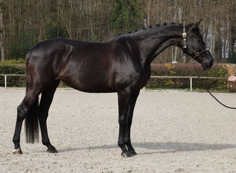 Jolie jument, noire, KWPN, cheval de dressage