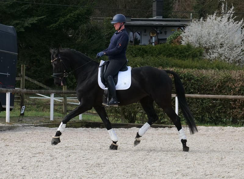 Name: Jiscalina Rasse: KWPN Geschlecht: Stute Geburtsdatum: 10.05.2014 Alter: 12 Stockmaß: 1.75m Farbe: Rappe Abstammung: mit Abstammungsnachweis Charakter: menschenbezogen, neugierig, intelligent, lernwillig, geduldig, gelassen, für Kinder geeignet Ausbildung/Eignung: geritten, Dressur, aktuell A und L erfolgreich hoch platziert, M ausgebildet, viel Potenzial Geländeerfahrung: aufmerksam, unerschrocken, nervenstark, gelassen, in der Gruppe Gesundheit: entwurmt, geimpft, beschlagen, ekzemfrei, Zähne kontrolliert, osteopathisch behandelt Haltung: Box, Paddock Besonderheiten: für ein Dressurpferd super sitzbequem, schmiede und verladefromm, herdenverträglich Die genannten Eigenschaften beruhen auf unserer persönlichen Einschätzung und stellen keine zugesicherten Merkmale dar. Preis: 25900 (Bruttopreis) Haben wir ihr Interesse geweckt? Um Ihnen einen besseren Eindruck von Jiscalina zu geben, senden wir Ihnen sehr gerne Ihr Reitvideo zu. Selbstverständlich stehen wir Ihnen für eine ausführliche Beschreibung des Pferdes, persönliche Beratung und zur Beantwortung aller Ihrer Fragen auch telefonisch zur Verfügung. Bitte schreiben Sie uns hierfür jederzeit eine WhatsApp Nachricht, oder rufen unter folgender Telefonnummer an: +49 15119487595 Unsere Telefonzeiten sind täglich von 7:00 - 13:30 sowie ab 20:00Uhr. Wir freuen uns über Ihre Kontaktaufnahme! Eine klinische oder Röntgenologische Ankaufsuntersuchung kann gerne vom Tierarzt Ihrer Wahl durchgeführt werden. Natürlich kann Jiscalina sicher und komfortabel in ihr neues Zuhause geliefert werden. Wir kümmern uns um alle notwendigen Vorbereitungen und den Transport, damit Ihr neues Pferd stressfrei, gut betreut, versichert und wohlbehalten im neuen Zuhause ankommt. Zurzeit präsentieren wir eine sorgfältig ausgewählte Vielfalt an Verkaufspferden. Bei uns finden Sie garantiert Ihr Traumpferd. Besuchen Sie uns auch gerne auf unserer Homepage unter: www.marvinsroyalhorses.de. Sehr geehrte Kunden, gerne stellen wir Ihnen unsere Pferde vor und führen, putzen, satteln, longieren, Bodenarbeit sowie Probereiten in der Reithalle, auf dem Platz oder im Gelände ist Ihnen möglich, um Ihr neues Familienmitglied näher kennenzulernen. Dieses kostet für ein Pferd 40€, für jedes weitere 30€ und wird beim Kauf wieder erstattet. Unsere Adresse lautet: Grube Ferdinand 50 53577 Neustadt Wied Google Maps: marvinsroyalhorses
