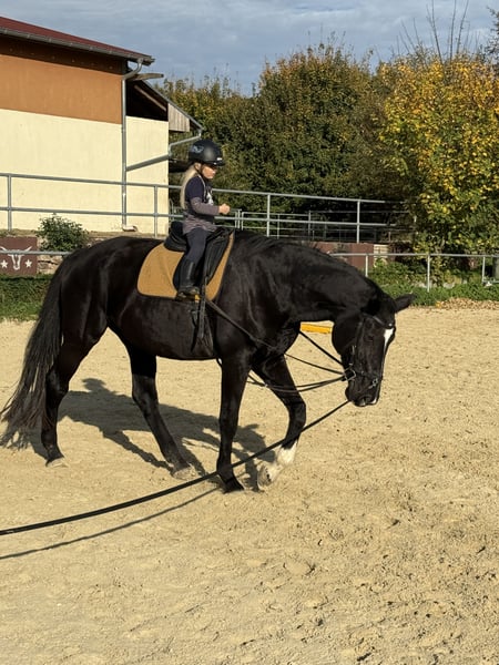 Zum Verkauf wegen Zeitmangel steht eine beeindruckende Rappstute (geb. 2014) mit einem Stockmaß von ca. 1,80 m, die durch ihre außergewöhnliche Nervenstärke, Rittigkeit und Vielseitigkeit überzeugt. Die Stute ist ein absolutes Verlasspferd und sowohl im täglichen Umgang als auch unter dem Sattel äußerst angenehm. Sie ist platziert in der A-Dressur, verfügt über hervorragende Grundgangarten und zeigt sich stets motiviert und leistungsbereit. Im Gelände ist sie sehr sicher, auch alleine und unerschrocken unterwegs. Selbst große Sankt-Martins-Umzüge meistert sie gelassen und souverän. Sie ist verkehrssicher, mutig und jederzeit kontrollierbar. Im Umgang ist sie: • sehr lieb zu Kindern • verträglich mit Hunden • verladefromm • schmiedefromm • insgesamt unkompliziert und zuverlässig Abstammung: • Vater: De Niro • Muttervater: Tango Ein ideales Pferd für ambitionierte Freizeitreiter:innen, Dressurreiter:innen oder als zuverlässiger Partner für Familie, Gelände und Alltag. Weitere Informationen, Bilder und Videos gerne auf Anfrage. Nur in fördernde Hände abzugeben. Kein Notverkauf.