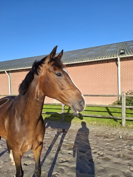 Isamone VP (Rousseau x Zeoliet), 12 jaar Geschikt voor fokkerij en recreatie. Leuke merrie, fokt zeer goede veulens en komt uit een predikaatrijke merrielijn. Volle zus Asimone is Inter ll en vele nichten en neven presteren goed in de sport en fokkerij. Merrie heeft zelf 3 nakomelingen gekregen, waarvan twee inmiddels hoog in de sport lopen (Z2 en Inter l) en één naar Amerika is vertrokken. Merrie is lief en makkelijk in de omgang, bekend met zo ongeveer alle soorten grondwerk, braaf langs de weg en verkeersmak. Merrie is altijd gereden (uitgebracht L1, getraind M) maar wordt momenteel niet gereden vanwege zwangerschap en jong gezin. Dit is tevens de reden van verkoop. Er zijn verschillende filmpjes van het rijden beschikbaar (ook van springen) maar dit zou weer opgepakt moeten worden. Merrie is onder het zadel niet geschikt voor beginners of onzekere ruiters. Merrie wordt makkelijk drachtig en is braaf met insemineren en opvoelen, tevens braaf met dierenarts en hoefsmid. Ik gun haar een fijn huis waar ze recreatief gereden kan worden of bij iemand die er nog een paar leuke veulens uit wil fokken. Echt een kans voor de hobbyfokker. Merrie is klinisch en röntgenologisch gekeurd. Heeft een röntgenologische bemerking die haar niet belemmerd als recreatiepaard en die ook niet erfelijk is. Meer info hierover, filmpjes en info over de merrie op aanvraag beschikbaar. Prijs bespreekbaar indien 5-sterren huis.