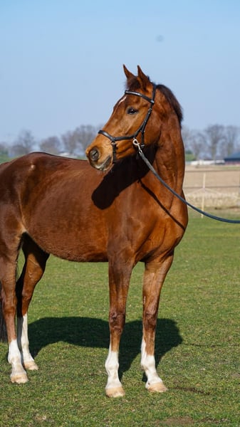 Wegens stoppen fokkerij te koop KWPN fokmerrie JAZZ x GRIBRALDI uit de bekende Lady-Reveil-stam, Merrielijn 27 Naam: Garijkea Word dit jaar 15, Schofthoogte 165 cm, 4 witte sokken. Als fokmerrie direct eerste inseminatie drachtig, makkelijke geboorte en een geweldige moeder voor het veulen (jaarling en 2 jarige aanwezig). Is zadelmak en 2 jaar geleden nog opnieuw doorgereden, zal opnieuw moeten worden opgepakt (Is geen paard voor beginners). Correct gevaccineerd en 2 maanden geleden nog bij de tandarts geweest. Geen stalgebreken Films op aanvraag. Mag gekeurd worden en prijs n.o.t.