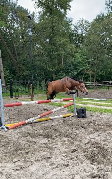 ervaren B-pony Wij zoeken een fijne nieuwe plek voor onze lieve B-maat pony. Ze heeft jarenlang ervaring bij de manege ( Ruitercentrum de Molen) en op ponykampen, en is bekend met groepslessen, springen, dressuur en bosritten. Onze dochters rijden al sinds hun zesde op haar, daarom hebben we haar destijds gekocht. Helaas kunnen wij haar nu door school en drukte niet meer de aandacht geven die ze verdient. We hebben hier heel lang over nagedacht. 🐴 Over de pony • Maat: B • Geslacht: merrie • Leeftijd: 16 jaar ( zie paspoort) • Kleur: Bruin met een kleine witte vlek op haar achterhand • Karakter: niet geschikt voor beginnende ruiters. ( Niet kinderen die een half jaar rijden , of een half uur per week) Dit betekent niet dat ze bokt of steigert, maar dat ze een ruiter nodig heeft die zeker en ervaren is. Als de ruiter niet duidelijk is of onzeker, werkt ze niet altijd mee. Ze heeft een kleine tik: soms beweegt ze tijdens het rijden haar hoofd, of draait ze een rondje in de stal met haar nek en hoofd. Het is niets ernstigs, gewoon een karaktertrekje dat af en toe voorkomt. • Ze kan ook eventueel gebruikt worden als weidemaatje, waar ze echt van geniet. • Daarnaast geniet ze nog steeds van een lekker ritje in het bos of gewoon gereden worden. • Sproet kan niet meer intensief gereden worden zoals op een manege. • Wij hebben met verschillende kinderen / ruiters gereden, ook naar het bos toegenomen, gesprongen enz. zonder enkel probleem. • Gebruik: o Jarenlange ervaring in groepslessen o Dressuur o Springen o Bosritten o Ponykampen • Kan eventueel ook dienen als weidemaatje • 🏡 Huisvesting Op de manege heeft ze altijd 24/7 buiten gestaan. Bij ons staat ze overdag buiten en ’s avonds tot ’s ochtends binnen in een stalletje. Verzorging & gezondheid 📋 Alles is altijd goed bijgehouden: • Paspoort aanwezig • Tandartsrapporten (laatste 2 jaar) • 2× per jaar ingeënt (influenza & droes) • 2× per jaar ontwormd • 2× per jaar behandeling tegen psyllium -zaad tegen zand en koliek • 4x per jaar hoefsmid 🧣 Optioneel mee te kopen • Zadel, hoofdstel, singel etc. • Bijbehorende toebehoren Alles in zo goed als nieuwe staat. 📞 Contact Voor meer informatie of kennismaking kunt u bellen naar: [06-43080876 ]