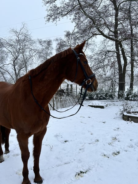 Fantastische springgefokte 15 jarige merrie van Up to Date. Ze heeft bij haar vorige eigenaar m dressuur gelopen.zelf heb ik met haar recreatief gereden. Ze gaat zowel in groep als alleen naar buiten en is gewend aan groot verkeer. Een 14 jarige bijrijdster sprong met gemak over 1.30 heen. Het is een flegmatieke merrie die zich echter aanpast aan de ruiter. Zelf ben ik zeer angstig en snel uit balans na een hersenbloeding. Ze loopt dan heel voorzichtig en staat gelijk stil bij disbalans. Met een ervaren ruiter kan ze fantastisch lopen. Ze gooit hierdoor dan wel hoog op, wat bij je moet passen. Echter, Francis is topfit, wil graag werken, is een fantastisch leerpaard. Alle knoppen zitten er op, zeer licht aan de hulpen, makkelijk terug te nemen. Maar zou het volgens mijn instructrice (jurylid tot grand prix en zelf heeft ze tour gereden dus beerje kennis heeft ze wel denk ik) ook fantastisch doen in de sport. Ze kent stal, maar staat bij mij 24/7 buiten met schuilstal en onbeperkt hooi. Keuren mag natuurlijk, kk.