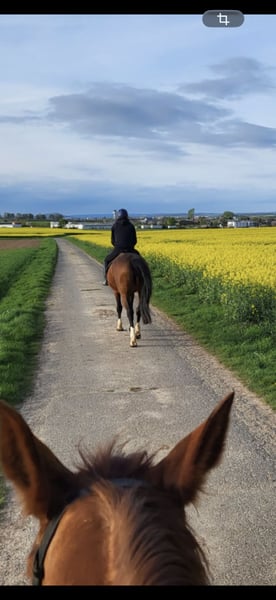 Due to lack of time, I can no longer do her justice. She is not suitable for beginner riders and requires a considerate, patient approach. I occasionally take her out in a group for trail rides, which works well, but she lacks routine and confidence on the arena. - She is 15 years old and approximately 16.1 hh tall - She is a confident, non-submissive mare - She is very people-oriented and eager to please Currently, I work with her extensively from the ground. She is an excellent horse in this regard and eager to learn. - She is currently kept in a mare herd on the paddock during the day and in a box at night - She is regularly vaccinated and dewormed Optional accessories can be purchased at a small additional cost. She will only be sold if everything feels right; otherwise, she remains with me. Priority for the right home!
