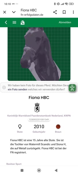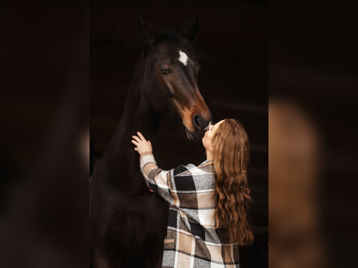 People-oriented and intelligent, affectionate and friendly. Very attached to humans. Due to ossification on the neck ligament, no longer suitable for dressage riding. Suitable for trail riding but requires a confident handler. Forms a strong bond with her person and loves them deeply. Only available as a companion horse. We see her as an ideal partner for circense and groundwork. Learns extremely quickly and always wants to please. Not suitable for stall confinement alone. Not suitable for beginners or riding schools. Also suitable for breeding. Daughter of Olympic champion Scandic. With a heavy heart, offered to loving hands.