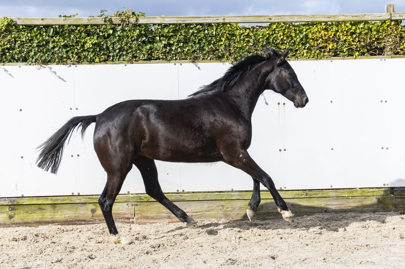 Umour Field is een zeer mooie donkere merrie, hoogbenig en met veel uitstraling. Ze straalt zeer veel kwaliteit uit en beweegt makkelijk en lichtvoetig. Een paard met bloed dat direct opvalt. Ze springt met veel afdruk en laat een goede manier en lichaamsgebruik zien op de sprong. Daarnaast toont ze al veel balans in haar bewegingen, wat later de rijdbaarheid ten goede zal komen. Een merrie met veel kwaliteit en een zeer interessante uitstraling voor de sport. Vader New Pleasure VDL springt op 1.45m niveau en is een zoon van For Pleasure (1.60m Grand Prix), één van de meest invloedrijke springhengsten aller tijden. Hij geeft vermogen, instelling en kwaliteit door. Moeder Gimour is een dochter van Quality Time TN (1.60m) en brengt opnieuw bewezen sportgenen in de lijn. De moederlijn is sterk met meerdere paarden op niveau: Patrick – 1.50m Vimour – 1.50m Amour – 1.50m Chardonnay SV Z – 1.35m Travolta – goedgekeurde hengst, 1.35m Een stam met bewezen prestaties en moderne sportgenen.