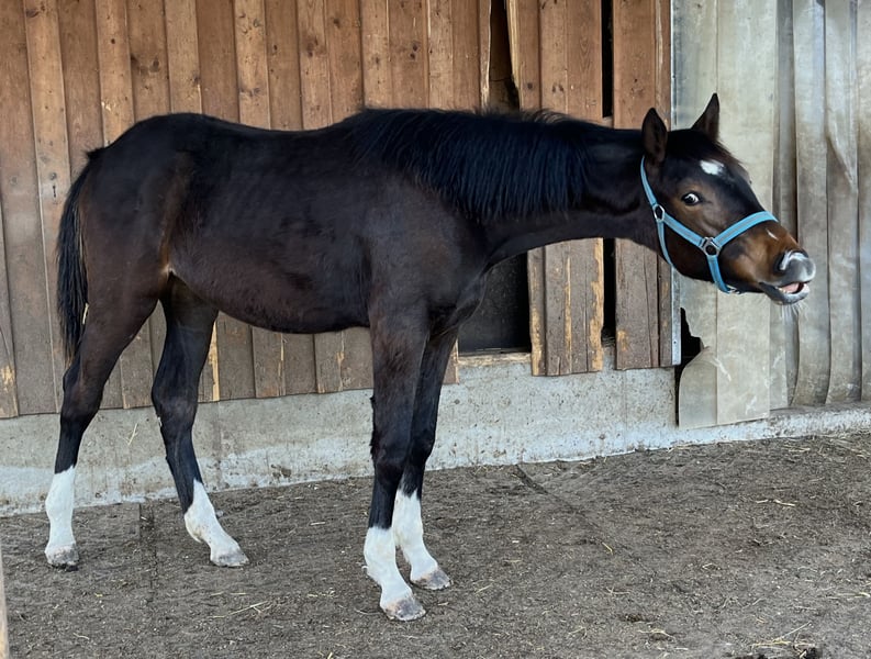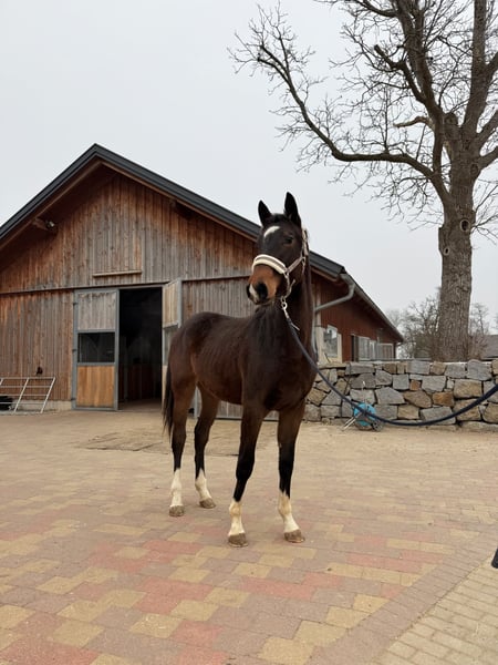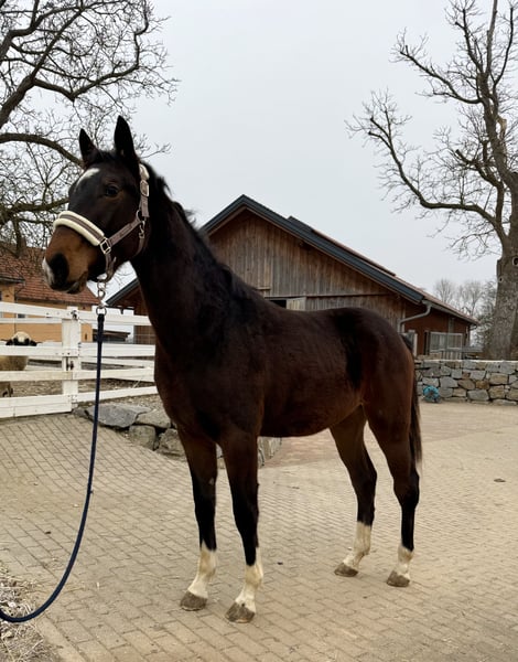 Zum Verkauf steht unsere 2024 geborene KWPN-Stute „Ulisse S“, die durch ihr hervorragendes Bewegungspotential herraussticht! Sie verfügt über drei sehr gute Grundgangarten, wobei uns ihr raumgreifender Trab schon von Fohlen an fasziniert! Die junge Stute kennt das Fohlen-ABC und ist im Umgang sehr angenehm. Sie wuchs von klein auf im Herdenverband auf und ist sehr gut sozialisiert. Momentan lebt sie zusammen mit einem Jährling und dessen Mutterstute im Offenstall. Im Umgang zeigt sie sich dem Alter entsprechend kooperativ, freundlich, aufmerksam und menschenbezogen. In der Herde ist sie stets verträglich. Eine vielversprechende Jungstute für den ambitionierten Sport, die aufgrund ihrer tollen Abstammung (Boston, Jazz) sicher auch für die Zucht interessant ist! Wir wünschen uns für unsere Ulisse ein liebevolles Zuhause mit fördernden Händen für ihre zukünftige Dressurkarriere!