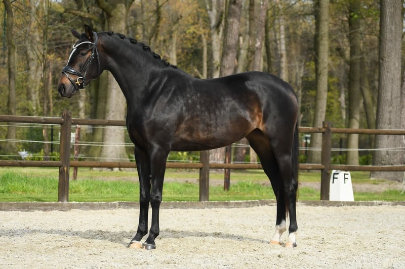 Cheval de dressage élégant de 3 ans, issu d'une lignée maternelle éprouvée