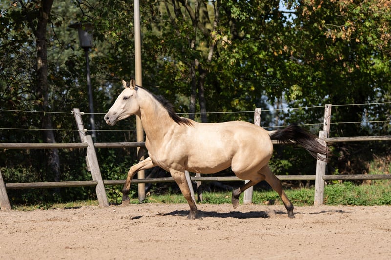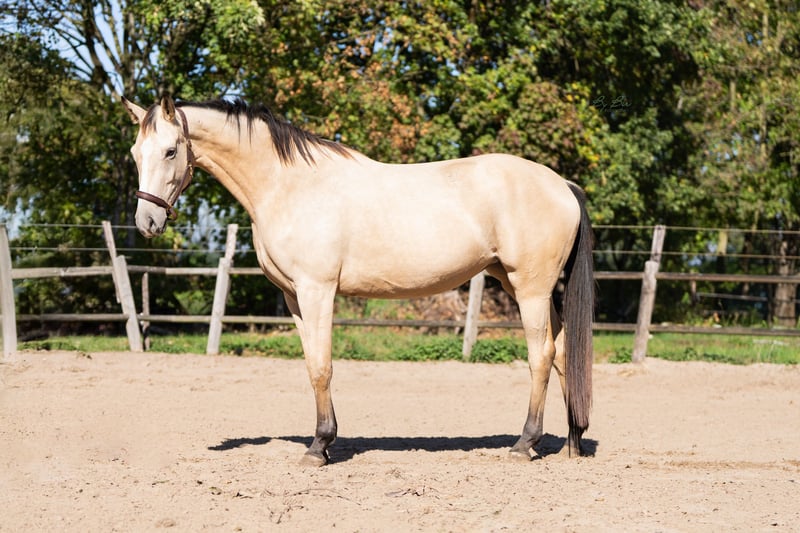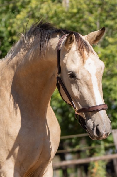 This stunning three-year-old warmblood mare immediately stands out due to her unique color and elegant appearance. She possesses a high level of quality in both conformation and movement, and has a friendly, willing temperament. She is a pleasure to work with and exhibits a calm, curious nature. She moves with great suppleness and balance, making her suitable for various disciplines. An ideal choice for someone seeking a young horse with potential and a wonderful character. Sandro's Match x Bosco Recently, she has undergone radiographic examination, including her back and neck.