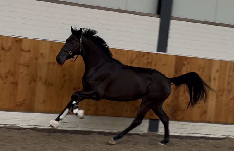 Half-sister to the highly popular approved stallion Security (by Secret), owned by Reesink Horses and standing in 2026 at Beckmann Hengste in Germany. This young mare is from the first crop of the impressive stallion Extreme US (by Escamillo), who is showing great promise both in breeding and in sport. She has an attractive, modern sport horse model: uphill built, long-legged, and long-lined. She moves with exceptional technique and power, offering three very good gaits with plenty of front and an outstanding canter. A very complete dressage horse. The mare has a well-balanced and calm character, learns quickly, and is not nervous or sensitive. Her first work on the lunge shows a lot of promise. Upon request, the mare can be broken in within 14 days after purchase and ridden 2–6 times under saddle, at €65 per ride. This top mare will be auctioned ONLINE from 5-7 May, registration is FREE Visit the website for all information, video's, x-rays, vet reports and more! Click / Copy / Paste the following link: https://dutchhorsetrading.auction/en/collection/60